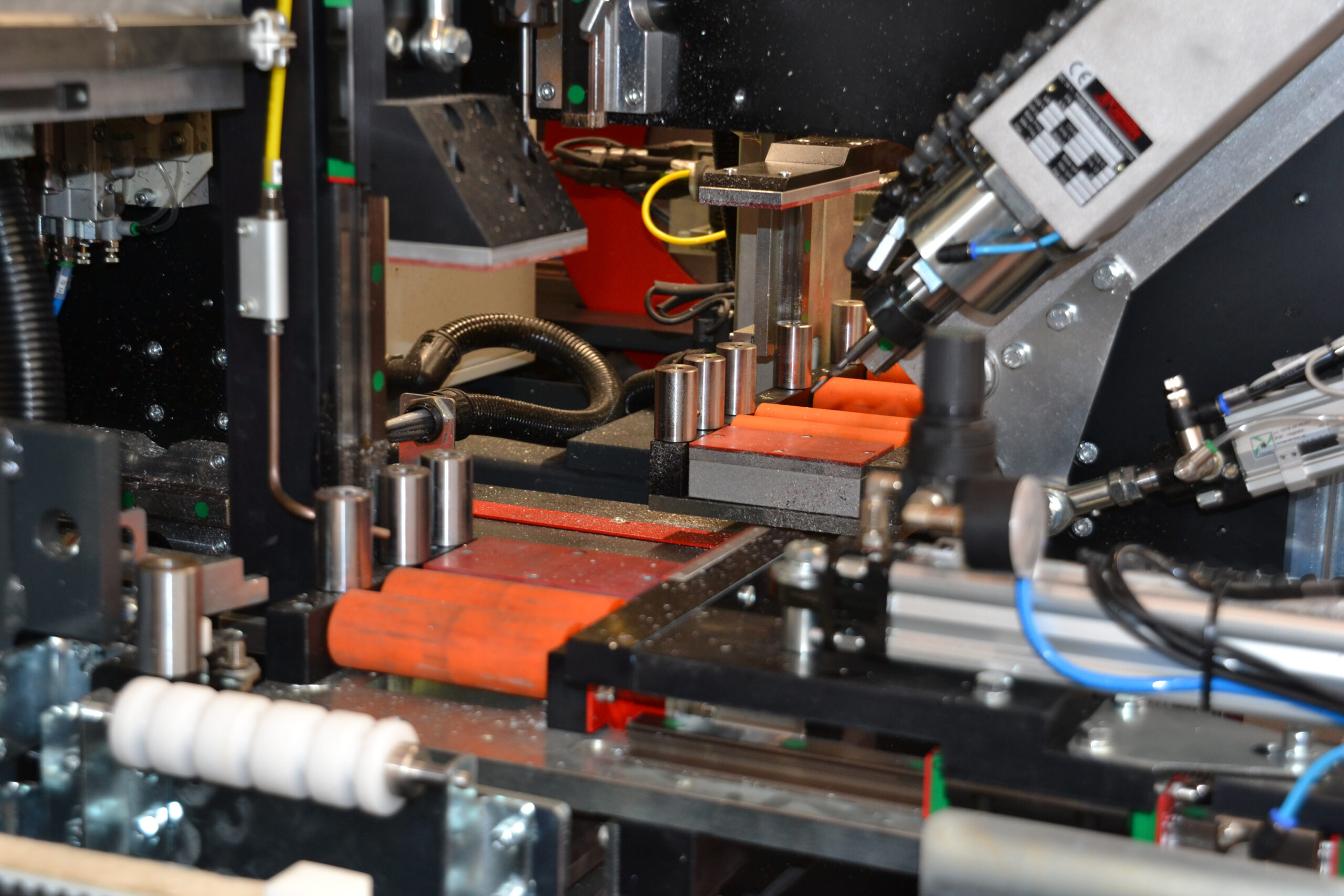 - Versatilidad en trabajos de alta velocidad. El módulo de trabajo alberga hasta 12 husillos de alta velocidad (6 estándar), para realizar todas las operaciones principales en perfiles de aluminio.